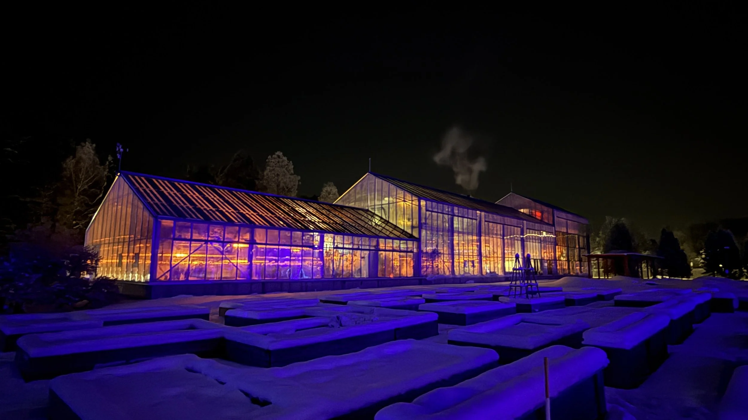 Botanian ulkopuutarha on muuntautunut talven taikamaailmaksi, Talvipuutarhaksi.